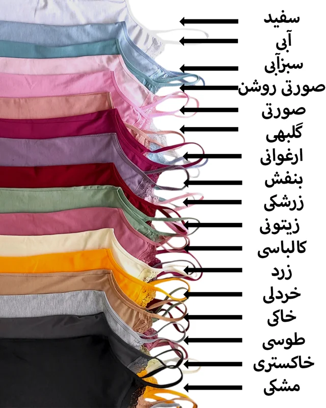 سفید - آبی - سبزآبی - صورتی روشن - صورتی - گلبهی - ارغوانی - بنفش - زرشکی - زیتونی کالباسی - زرد - خردلی - خاکی - طوسی - خاکستری - مشکی